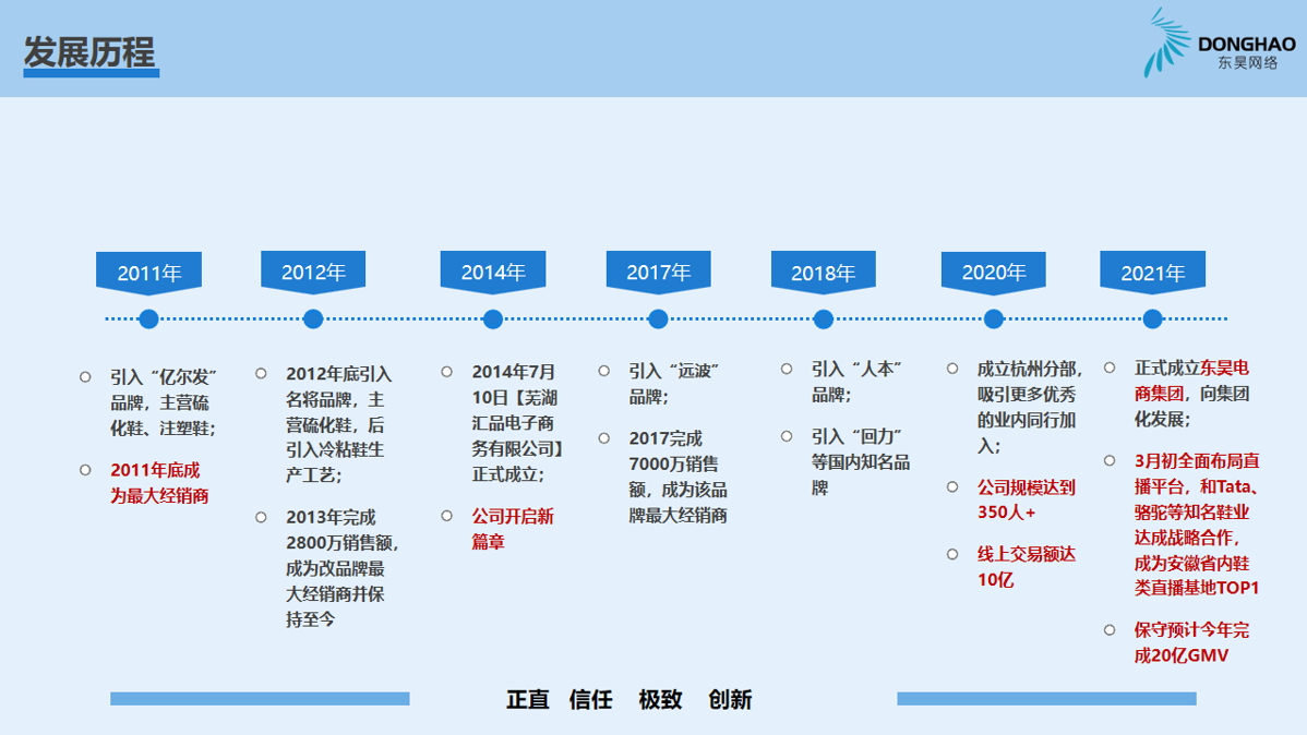 蕪湖東昊網(wǎng)絡(luò)科技有限公司,成立于 2014 年,是一家以互聯(lián)網(wǎng)平臺(tái)銷售為核心的電子商務(wù)運(yùn)營(yíng)商,公司成立以來(lái),始終專注于休閑運(yùn)動(dòng)鞋的互聯(lián)網(wǎng)銷售業(yè)務(wù),產(chǎn)品線覆蓋硫化鞋、注塑鞋、冷粘鞋,在互聯(lián)網(wǎng)二級(jí)類目單品牌排名前三,綜合成績(jī)排名TOP1;